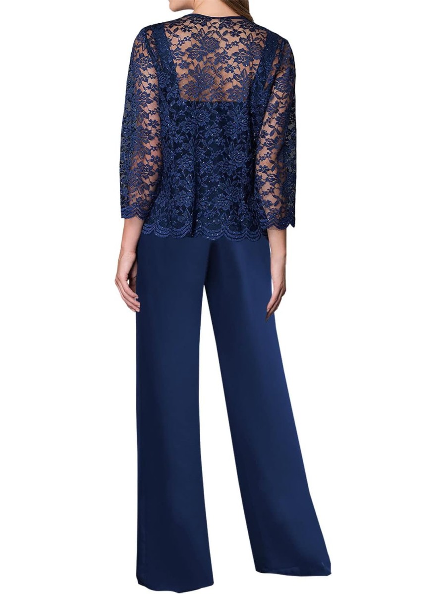 - Dress Detail: Chiffon and lace material , Floor Length , A-Line , Scoop Neck , Long Sleeve , Lace Jacket , Pants Suits , Women's Suiting , Zipper Closure on the Back.
