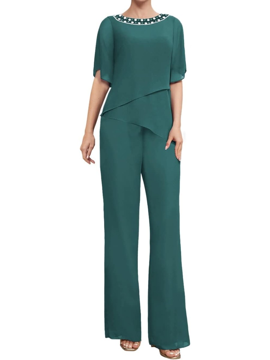 Mother of The Bride Pants Suits for Wedding Chiffon Womens Pant Suit for Wedding Guest Dresses 2 Piece