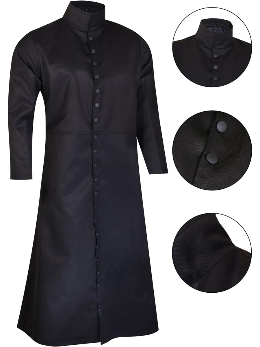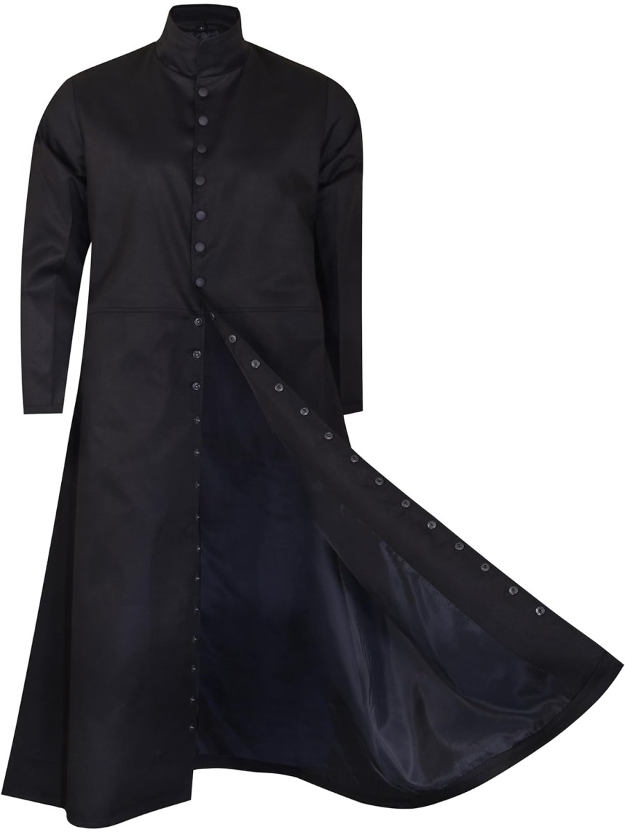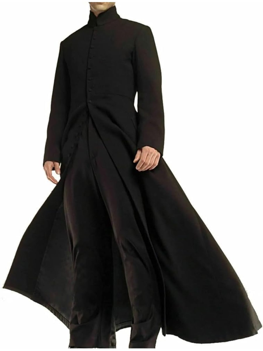 - MATERIAL: This trench coat is made of 100% cotton and is offered in black. Inspired by the "Matrix" movie, this long black coat features a button clasp on Keanu Reeves's wear. Robust Enough For Everyday Wear!