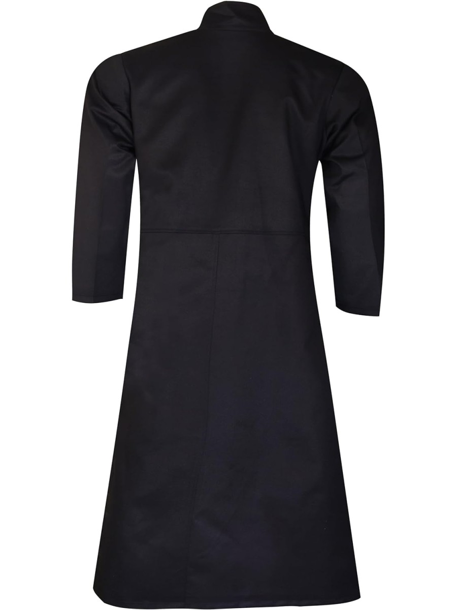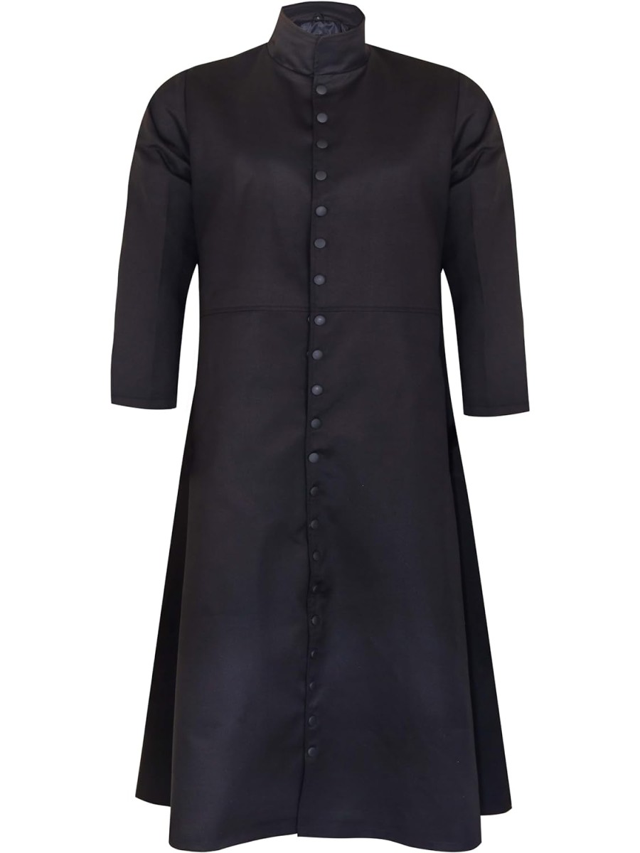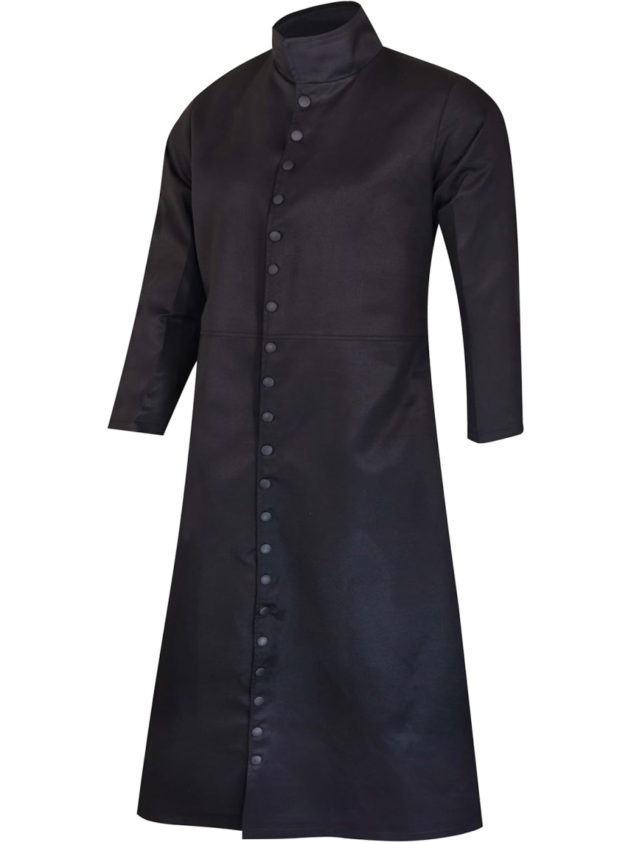 - MATERIAL: This trench coat is made of 100% cotton and is offered in black. Inspired by the "Matrix" movie, this long black coat features a button clasp on Keanu Reeves's wear. Robust Enough For Everyday Wear!