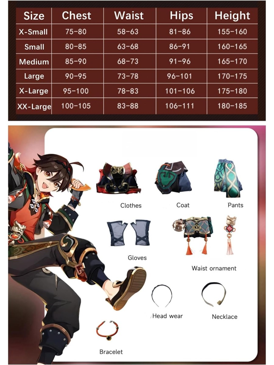 - WELCOME YOUR INQUIRY: We have costumes for all Genshin characters, and each costume is available in multiple sizes, if you are not sure of your size, please feel free to ask me, and I will provide you with the best size