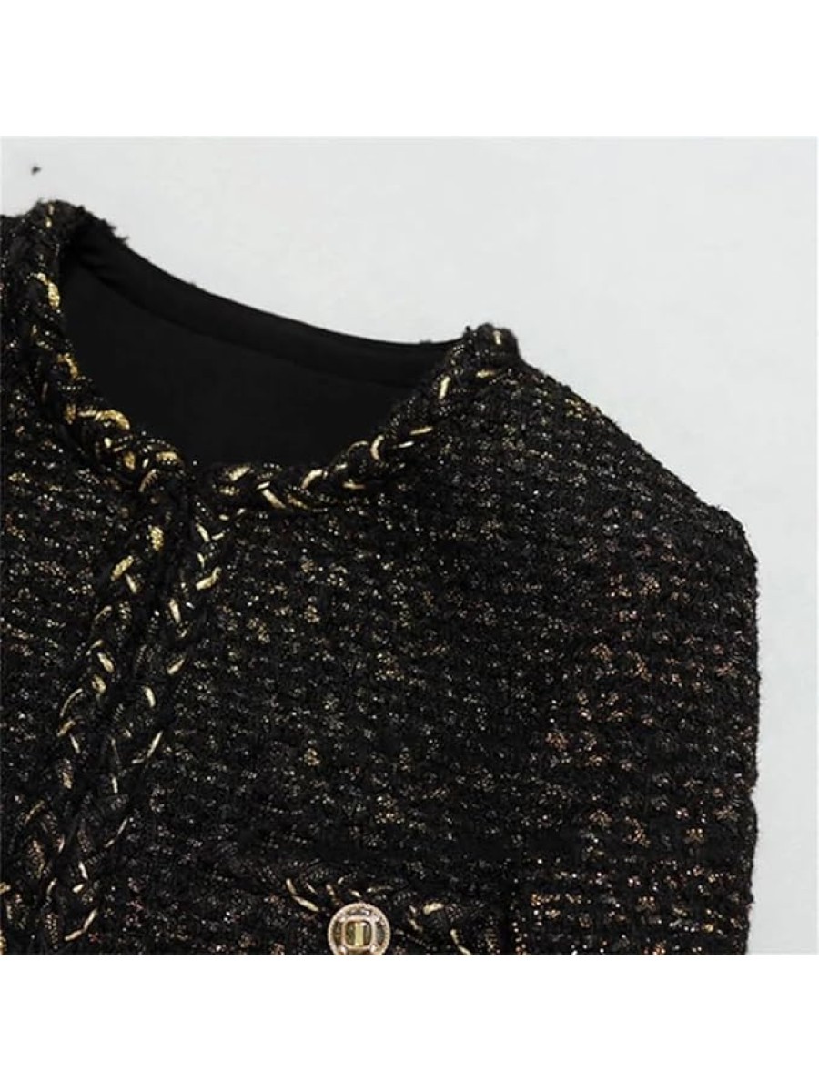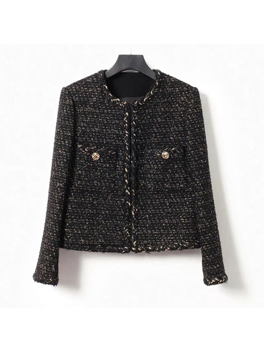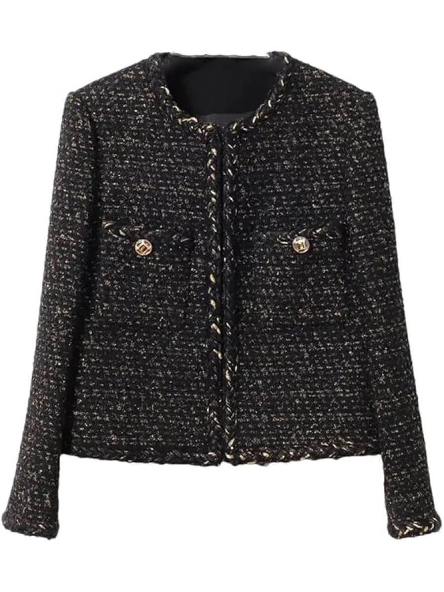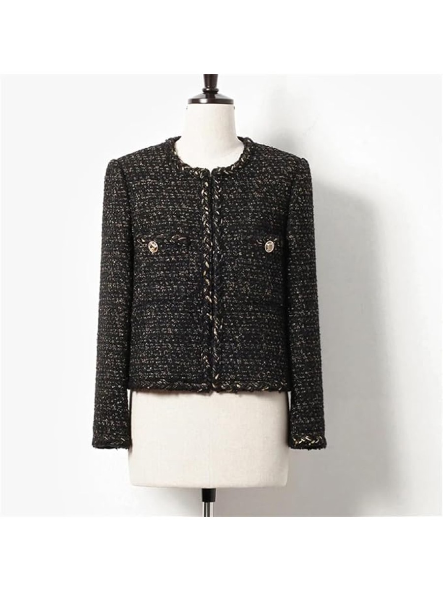 - Elegant Design: Inspired by the classic French small fragrance style, this vintage tweed jacket features a slim fit and chic design, perfect for adding a touch of sophistication to your wardrobe.The gold button-down front and pockets at the waist add convenience and practicality, with blended fabric, a three-dimensional and delicate grainy surface, and a rich and full hand feeling