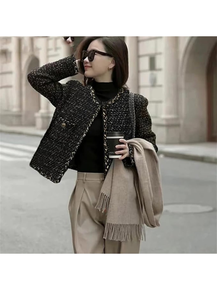 - Style Name:Business wear/Sophisticated style/Classic tweed/Comfortable fit/Warm jacket/Durable fabric/Timeless design/Fashion statement/Work-appropriate/Party wear/Dinner outfit/Office attire/Business meetings/Tweed outerwear/Woolen fabric/Flattering fit/Women's wardrobe essential/French-inspired fashion/Autumn and winter clothing/Elegant coat/Trendy jacket/Plaid tweed/Stylish outwear