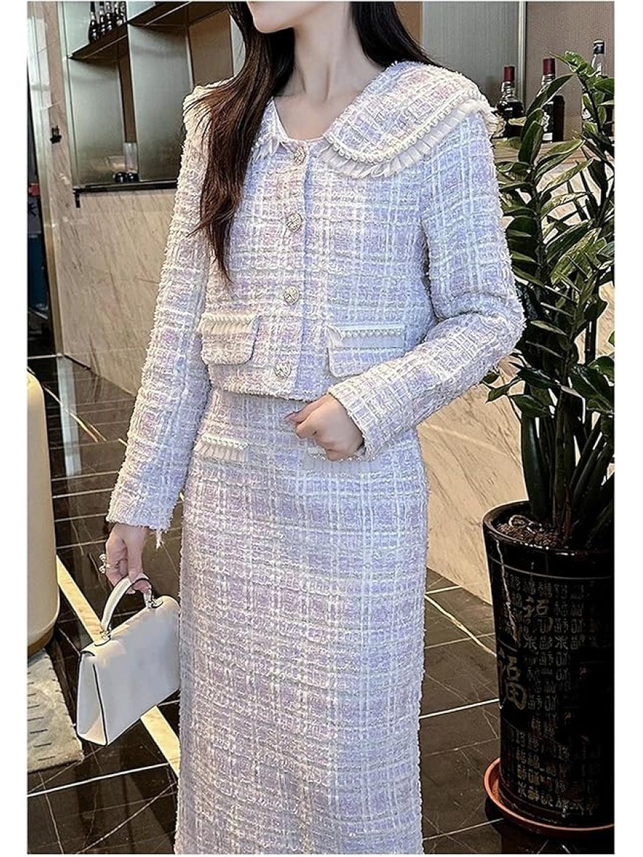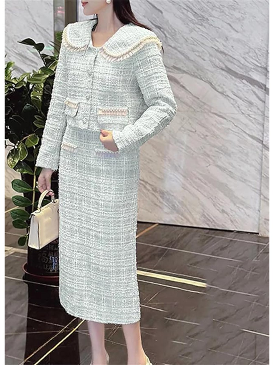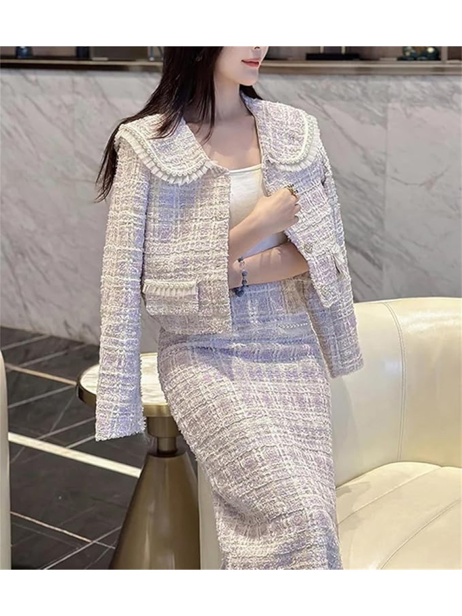 Women's Fashion Two Piece Set Tweed Jacket Coat + Skirt Set Fall Winter 2 Piece Outfits