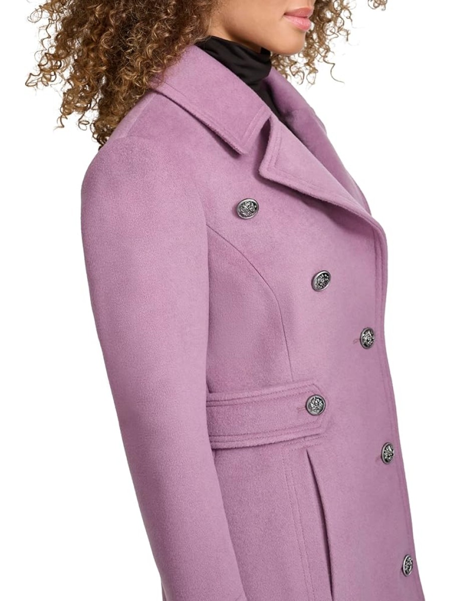 - Features: sb military insipired wool coat with contrast button detail and notched collar